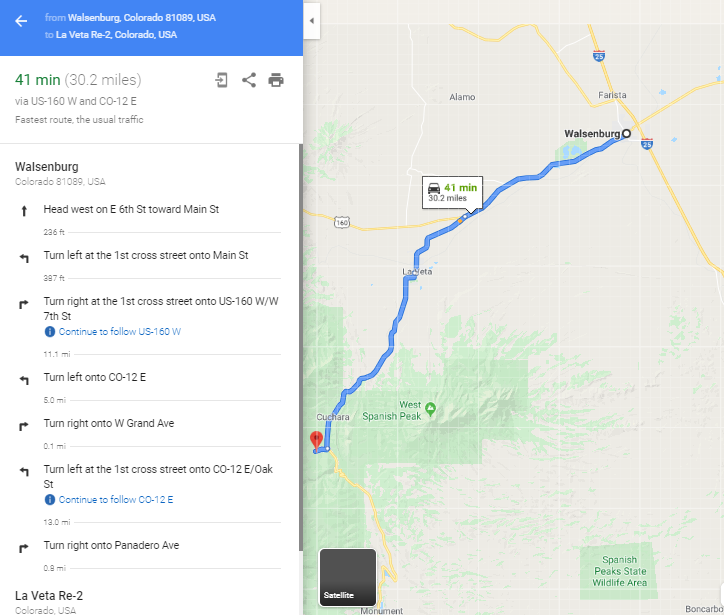 Directions to Property from Walsenburg, CO