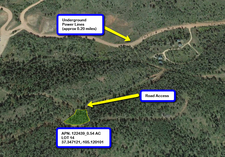 ** Estimates to run power is between 5k and 15k depending on the lot. You will need to get estimates for your lot from the power company (contact San Isabel Electric Association 719-547-2160)